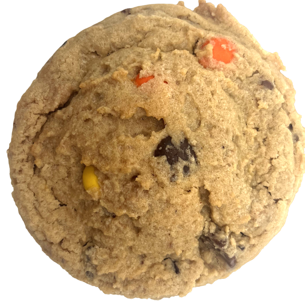 A rich, dark chocolate cookie with peanut butter chips and Reese’s Pieces!