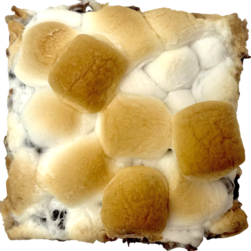 A buttery graham cookie base topped with melty chocolate chunks and toasted marshmallows!